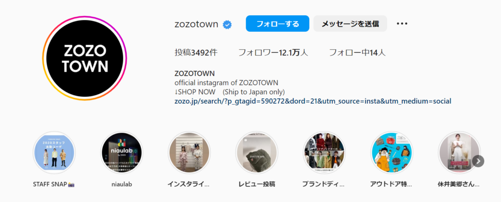 ZOZOTOWNのECサイトは、正方形の写真が3つずつ並ぶ構成でインスタグラムと似ています。