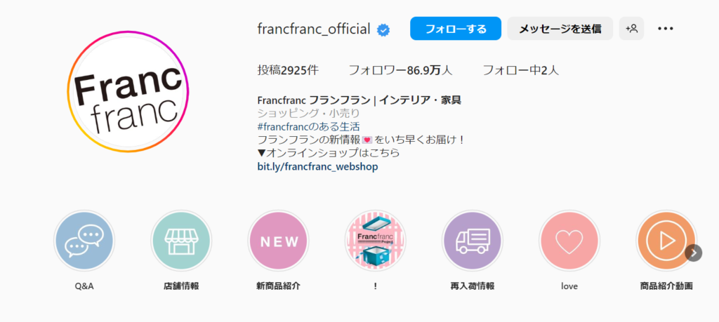 ユーザーに押し売りする印象を与えずに、上手くインスタ運営を続けている事例といえるでしょう。